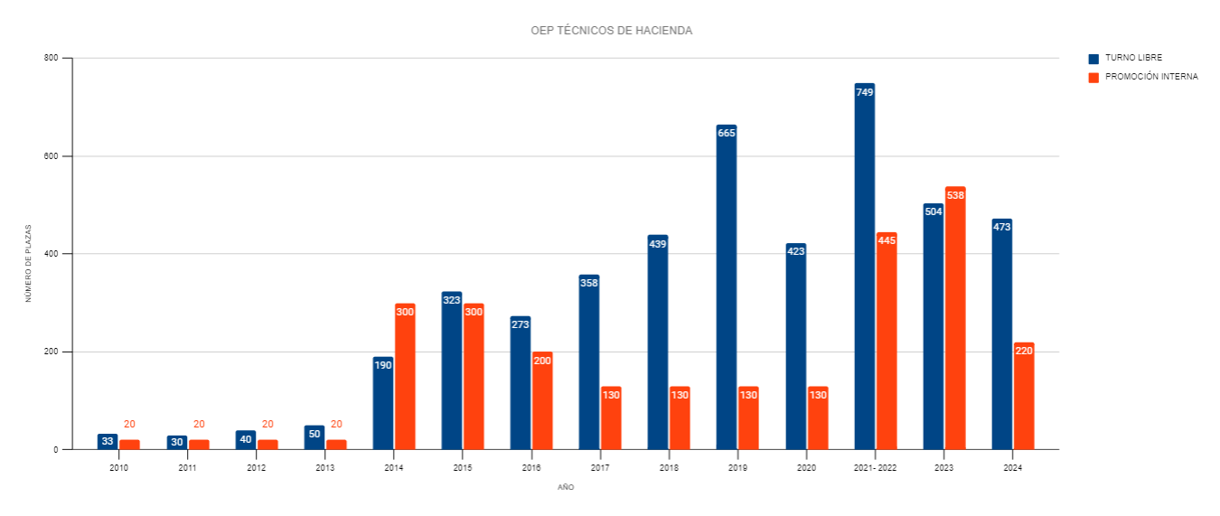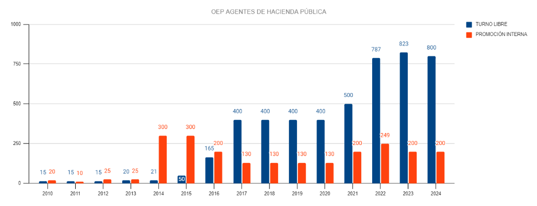 Si analizamos el número de plazas para ambas oposiciones, CTH y AHP, vemos un incremento de las mismas. El número de plazas en los primeros años (2010-2013) viene marcado por la crisis económica y financiera que sufrió el país durante más de un lustro, en estos años apenas se convocaban plazas, lo que produjo que la edad media de la plantilla de la AEAT fuese muy elevada. Según un informe de la OCDE de 2017, era una de las más envejecidas del mundo; solo el 20% de sus empleados tenía menos de 45 años.